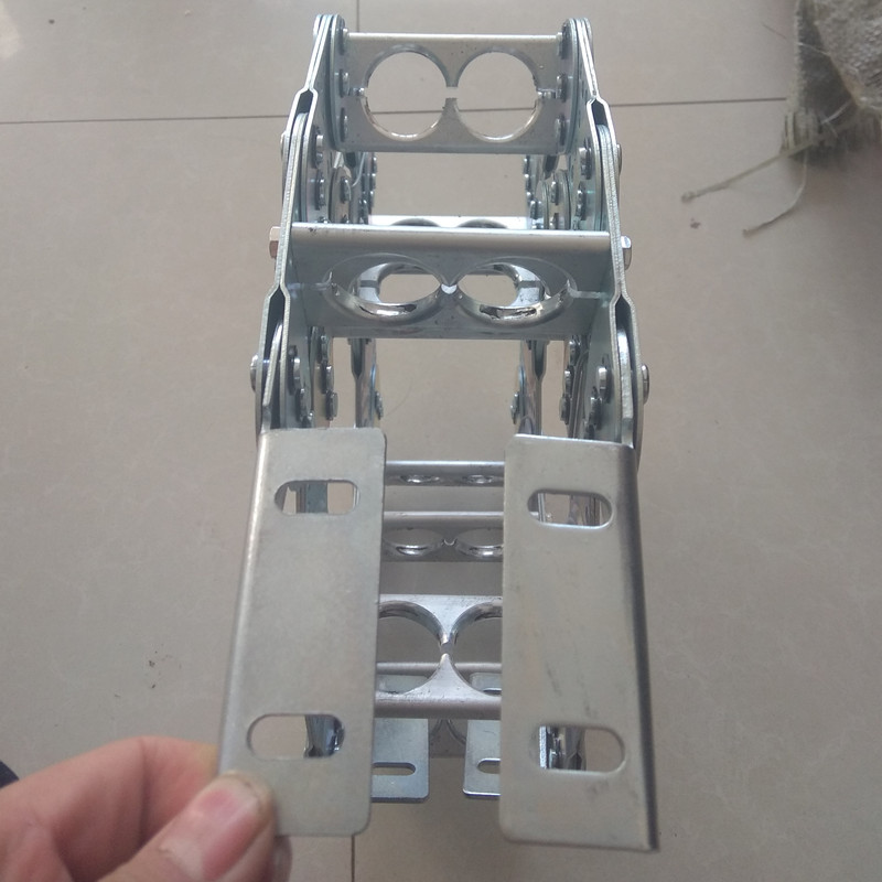 使電纜或橡膠管與拖鏈之間產(chǎn)生相對(duì)運(yùn)動(dòng),不產(chǎn)生扭曲變形,鏈板經(jīng)鍍鉻處理外形效果新穎,結(jié)構(gòu)合理,靈巧強(qiáng)度高,