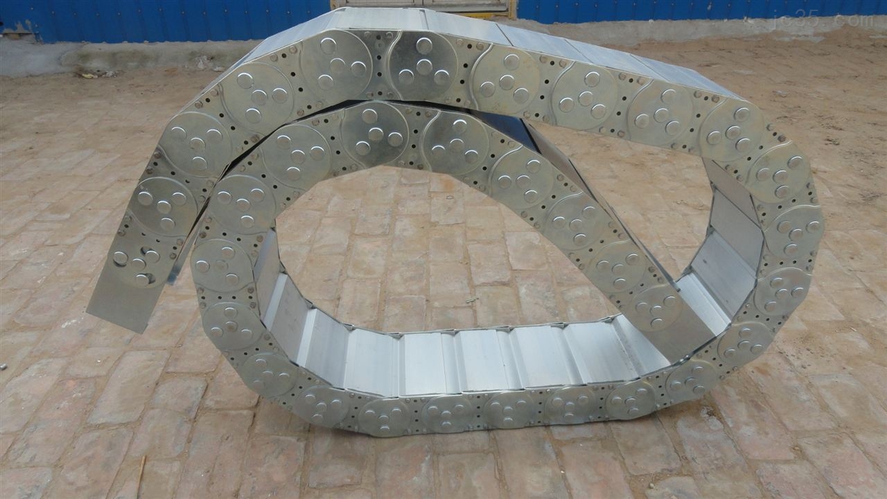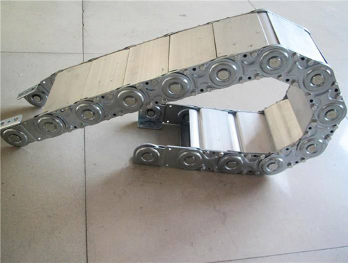 冷軋鋼和不銹鋼。拖鏈的型號(hào)、拖鏈的總寬、拖鏈的長、支撐板的型式、支撐板內(nèi)置孔的大小、拖鏈的彎曲半徑