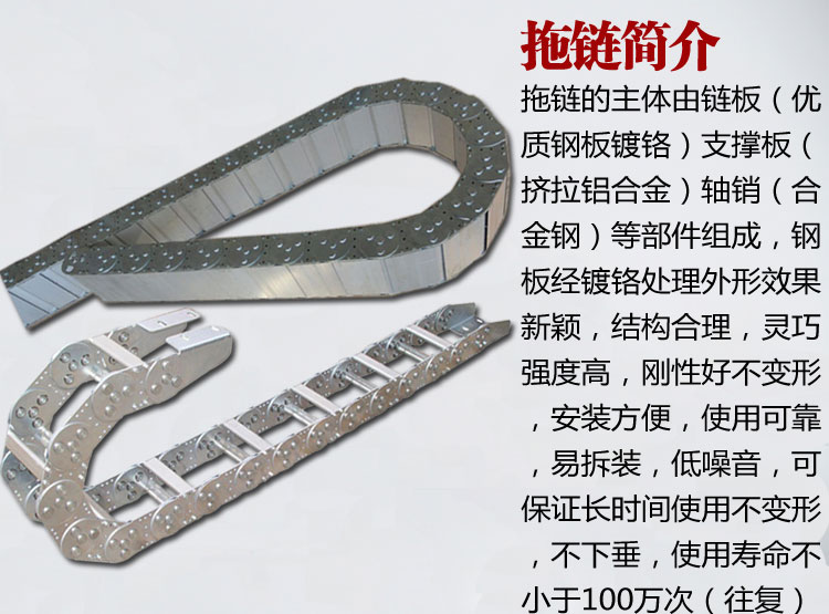 本公司產(chǎn)品,支持3-80米長(zhǎng)行程高性能,請(qǐng)放心選購(gòu),品質(zhì)承諾,三年內(nèi)非人為損壞,拖鏈斷裂,脫節(jié),壞一賠十 ,鋼制拖鏈屬于定做,切記確定好尺寸,非質(zhì)量問(wèn)題,買家自己承擔(dān)。
