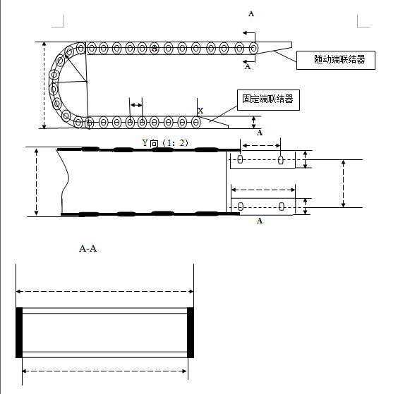4、鏈板的高度,也就是支撐板的高度,是由電纜最大直徑?jīng)Q定的,機(jī)床最大限度運(yùn)轉(zhuǎn)時(shí),如拖鏈的寬度超過(guò)300mm,拖鏈的長(zhǎng)度超過(guò)4m時(shí)出于穩(wěn)定性原因,應(yīng)考慮選擇加大一號(hào)規(guī)格的拖鏈。