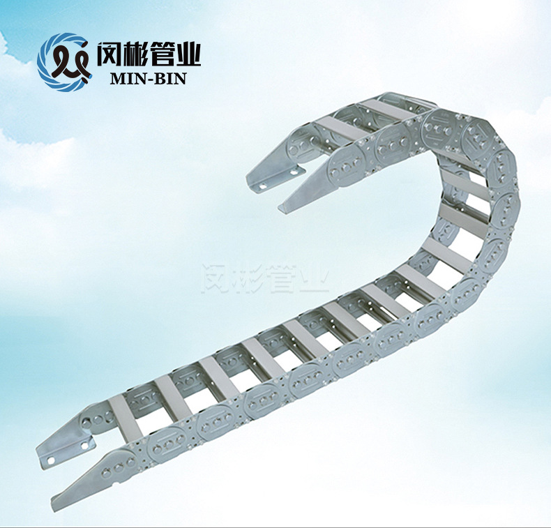 穿線拖鏈?zhǔn)卿撝仆湘湥哂懈叩膲毫涂估?fù)荷,良好的韌性高彈性耐磨性阻燃;高低溫性能穩(wěn)定,可以在室外使用。穿線鋼制拖鏈在輸送方面性能發(fā)揮最佳,尤其是進(jìn)行導(dǎo)向輸送。