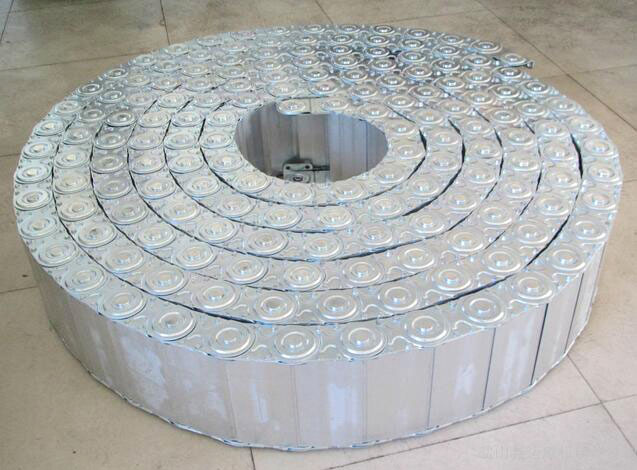 鋼鋁拖鏈的主體是由鏈板(采用優(yōu)質(zhì)鋼板經(jīng)淬火后再拋光鍍鉻/鍍鋅/噴塑處理)、支撐板(擠拉鋁合金)、軸銷(合金鋼)等部件組成.使電纜或橡膠管與拖鏈之間不產(chǎn)生扭曲變形,鏈板經(jīng)鍍鉻處理外形效果新穎,結(jié)構(gòu)合理,靈巧強(qiáng)度高,該產(chǎn)品鋼性好,不變形.安裝方便,使用可靠,易拆裝,不下垂.由于本產(chǎn)品外形精美,可在較大程度上增強(qiáng)機(jī)床設(shè)備的整體藝術(shù)美觀效果,增強(qiáng)我國機(jī)床,機(jī)械設(shè)備在國際市場的競爭能力。