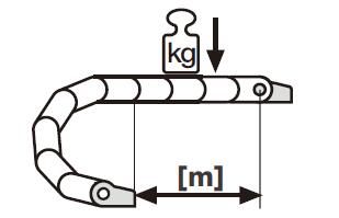 所選產(chǎn)品的前言部分找到圖表。在本章的后續(xù)部分,你可以找到樣本中所有系列產(chǎn)品的FLG與FLB值。通過這個圖表你可以找到對應(yīng)拖鏈的承載及行程查到所選拖鏈的最大負(fù)載